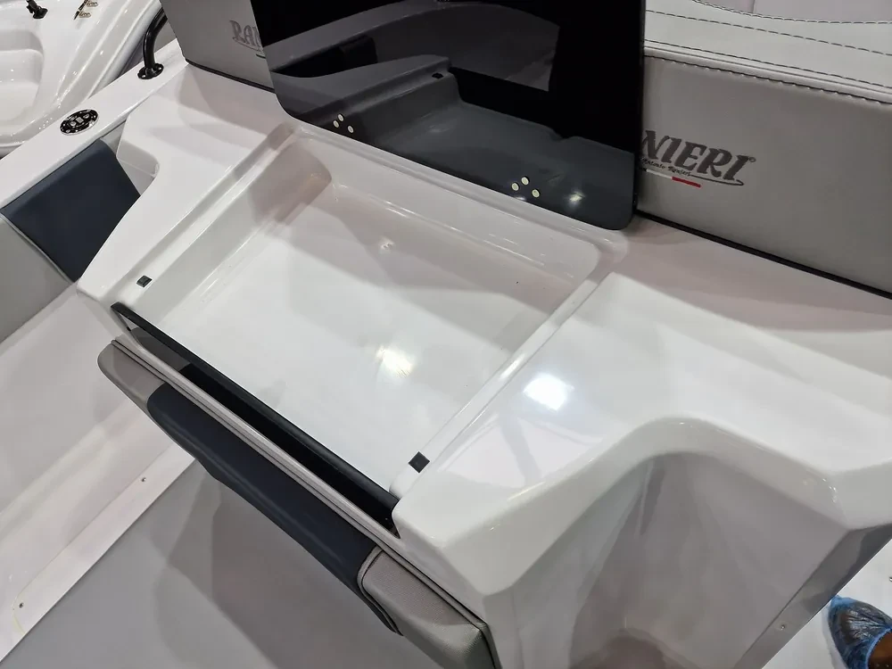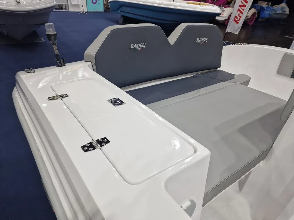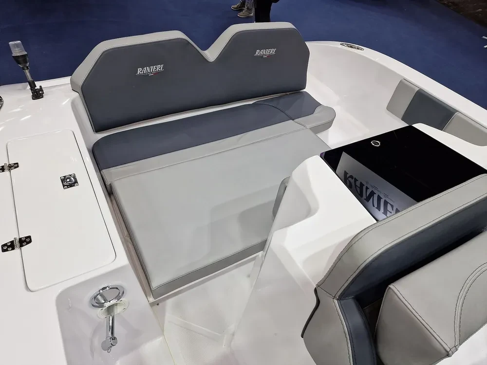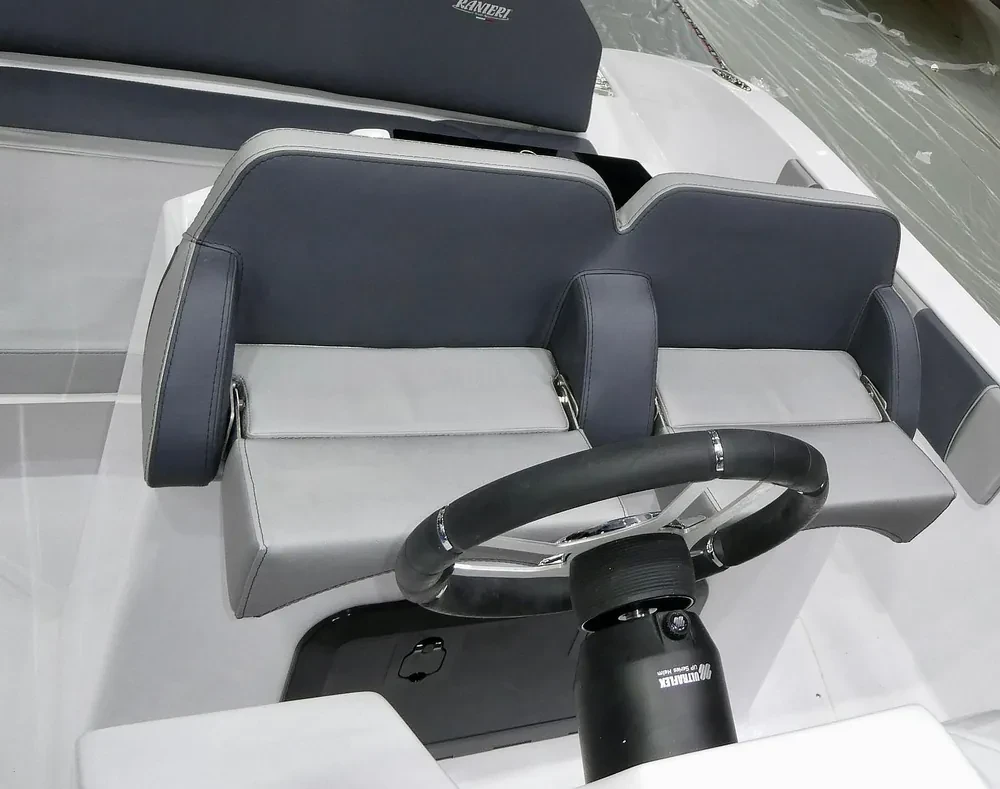 The deck is spacious and provides a comfortable space for lounging in the sun. Under the deck there is a cabin with beds for at least 4 people. The cockpit offers a wide bench at the stern, under which there is a large storage area. Side aisles are wide and safe. Bench covers and sun cushions are standard equipment on the vessel. Ranieri SAUVAGE 22 is a perfect family boat with which you can enjoy various activities such as water sports and cruising along the Adriatic coast and get to know our islands and beautiful bays.