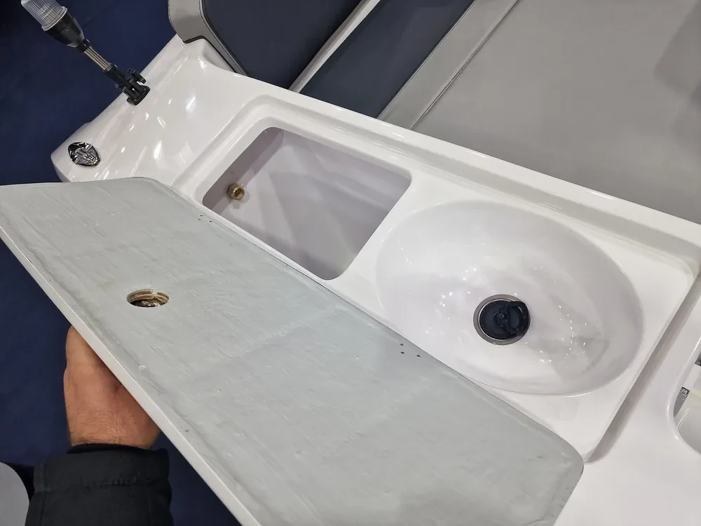 – First of all, it is an intelligently designed compact boat with a cabin – a sufficiently large Sundeck boat with a pleasant sunbathing area on the bow