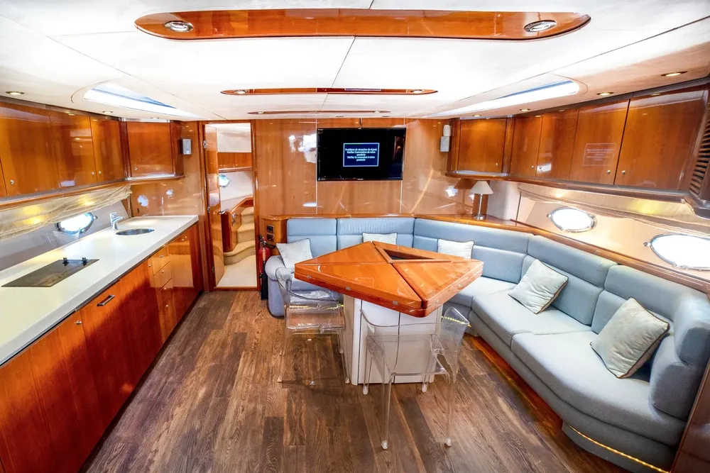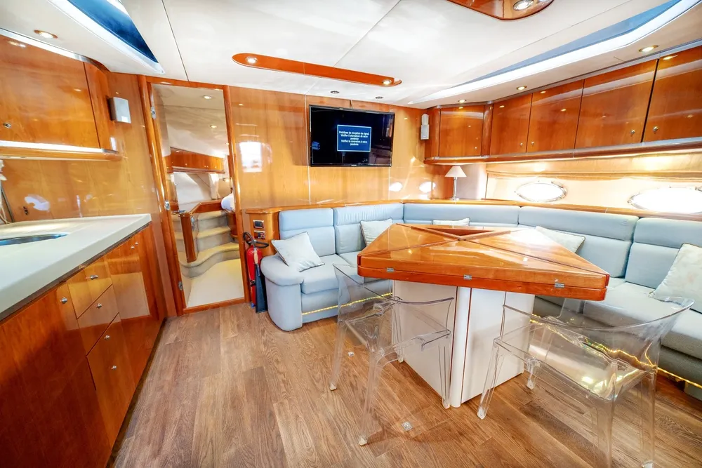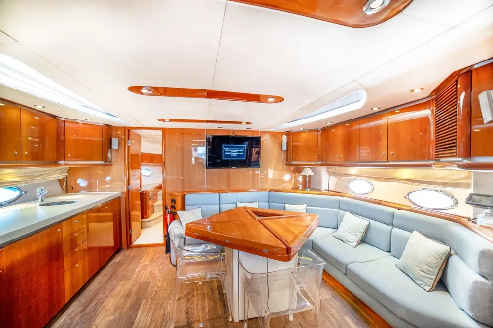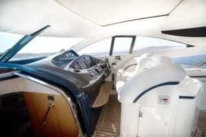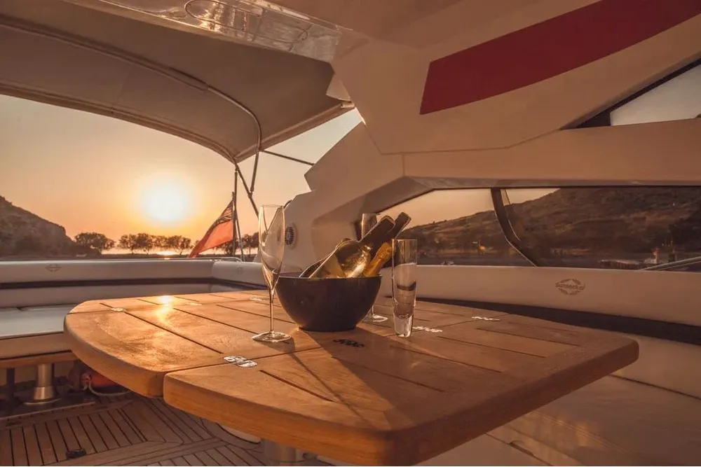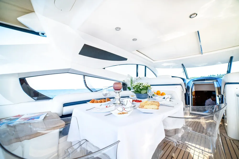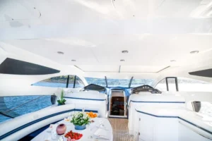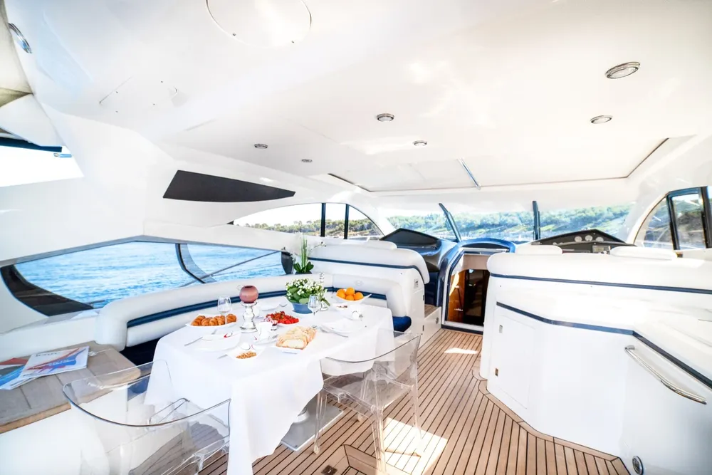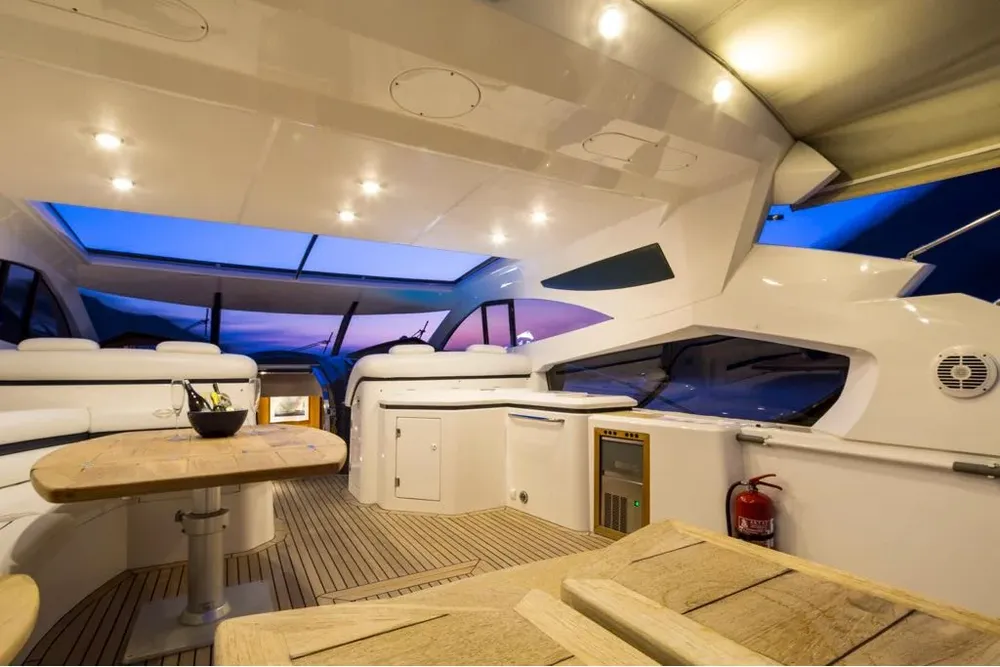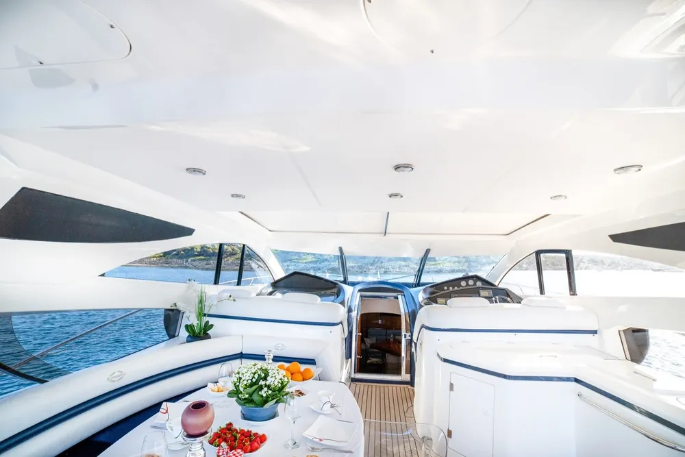 Due to the large glazing area, the interior leaves the impression of a completely open space even with a closed hardtop, which is also made of glass. There are no sharp corners in the interiors – Sunseeker has been building boats for over 40 years, testing them in the calmest waters and doing everything possible to minimize the risk to the boat’s occupants.