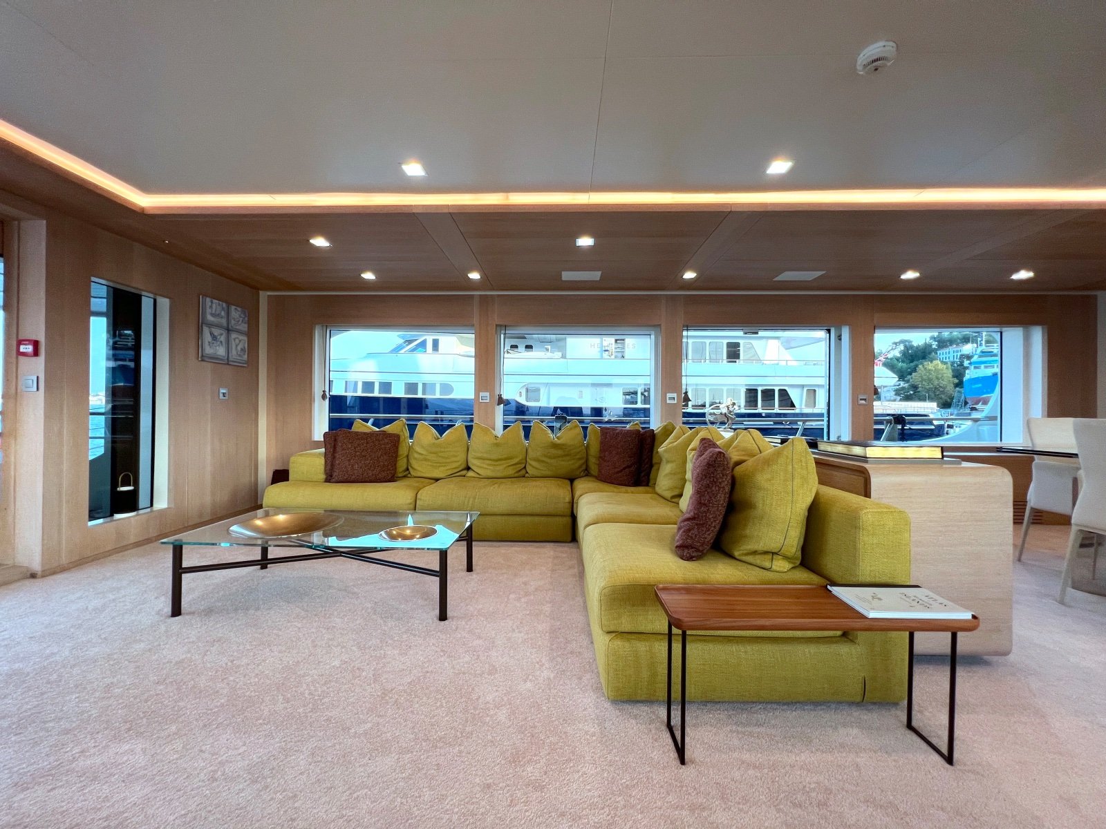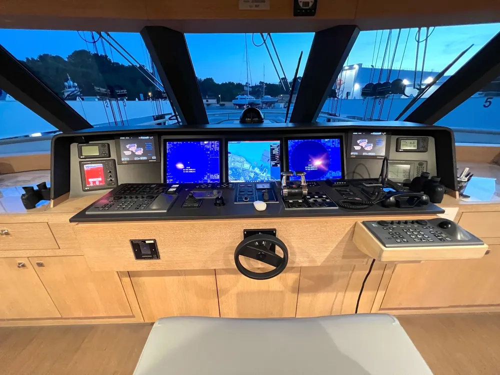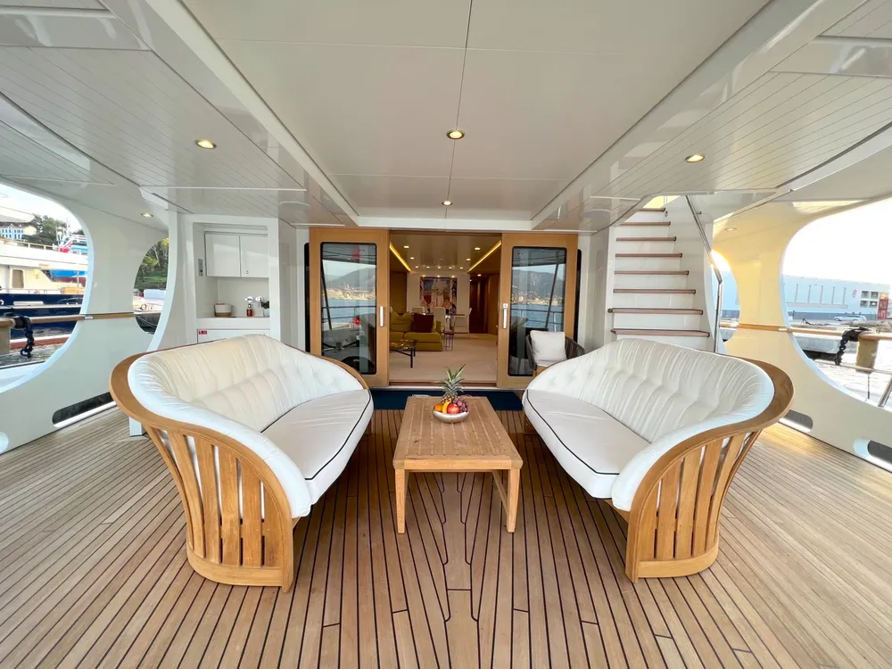 Her 3 spacious decks offer generous exterior space. Thanks to her intelligent layout, this yacht provides a number of different areas for entertainment and relaxation, along with separate spaces for privacy. Sidewalks go around all decks, allowing you to enjoy the outside and have access inside from different angles.