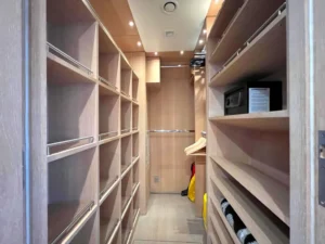 The starboard side garage door converts into a generous swim platform, providing the luxury of having a private beach in the middle of the sea. It also serves as a dock for the tender and the garage itself is a great storage for numerous water toys. The passerelle can convert into swimming stairs while at anchor, giving the additional access to the water.
