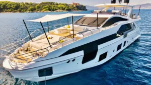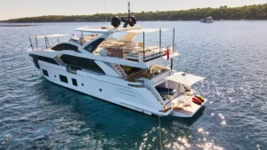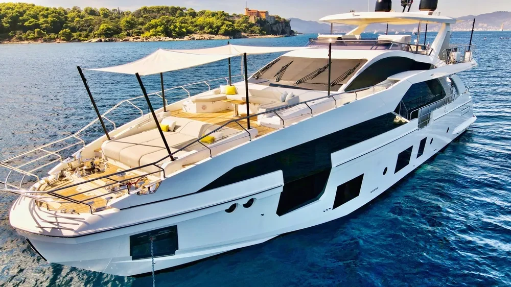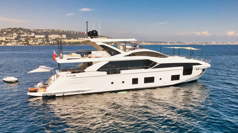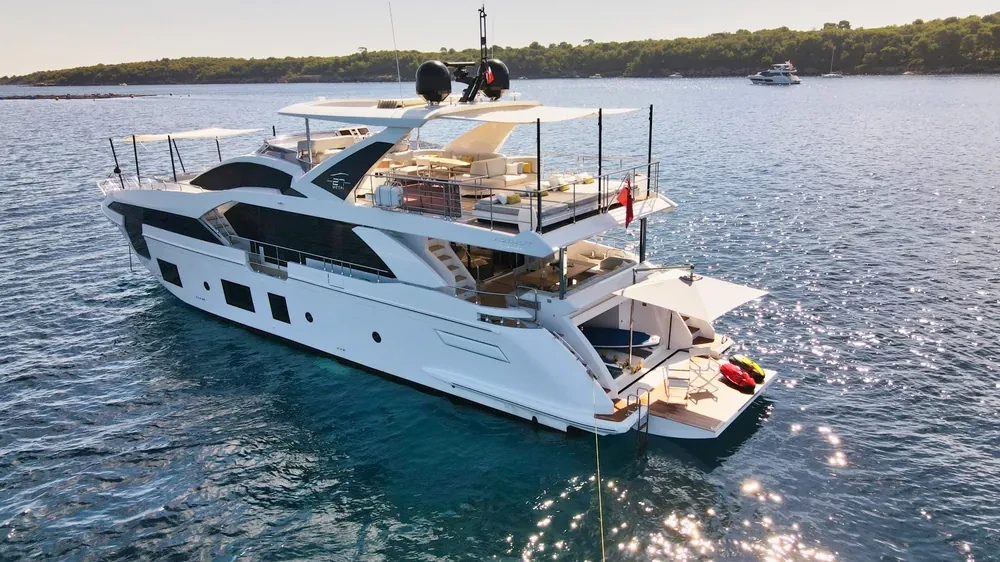Motor yacht WAVE measures 26.78m (87’86’’) and was built by the Italian shipyard Azimut Yachts in 2019. Her elegant interiors were created by Salvagni Architetti, with striking exterior lines by Stefano Righini. She can accommodate up to ten charter guests in five cabins, with an onboard crew of four.
