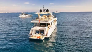 NOTABLE FEATURES OF WAVE: ~Flybridge wet bar ~Beautiful modern interiors ~Renowned interior and exterior designers ~Ample sunbathing space ~Spacious en-suite guest cabins ~Draft of only 1.9m/6.4ft to navigate shallow waterways ~Air conditioning ~Wi-Fi