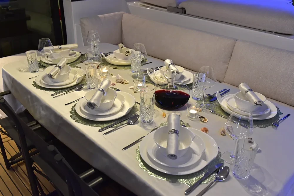 APA (Advance Provisioning Allowance) – USD 11.000 paid in advance for covering running costs during the charter: port and marina fee, water toys, national park entrances, custom fees and charter licenses if chartered outside of Croatia, drinks which are not included in beverage packages, and anything else that guests might need while on charter. A strict set of accounts is held by the captain throughout the charter and any funds not spent are refunded to the client in full.
