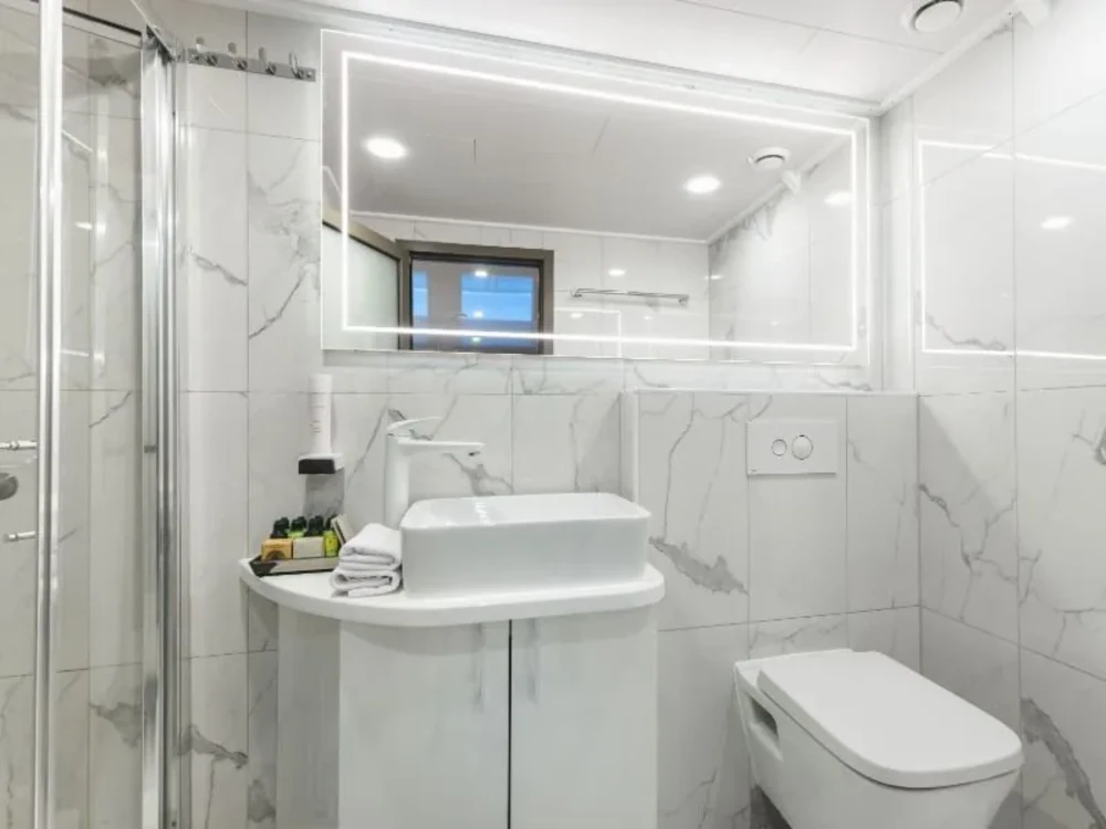 Air conditioning, Anchor chain counter, Echo sounder, MP3 Player, Shore power, TV, Smart TV, iPad/iPod docking station, WiFi, Heating