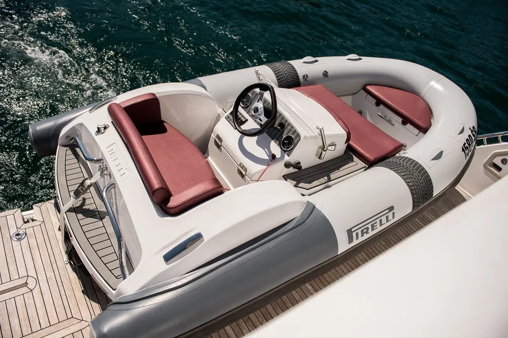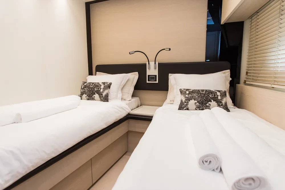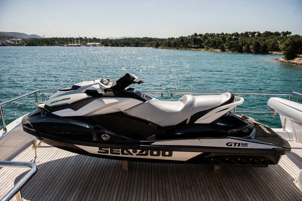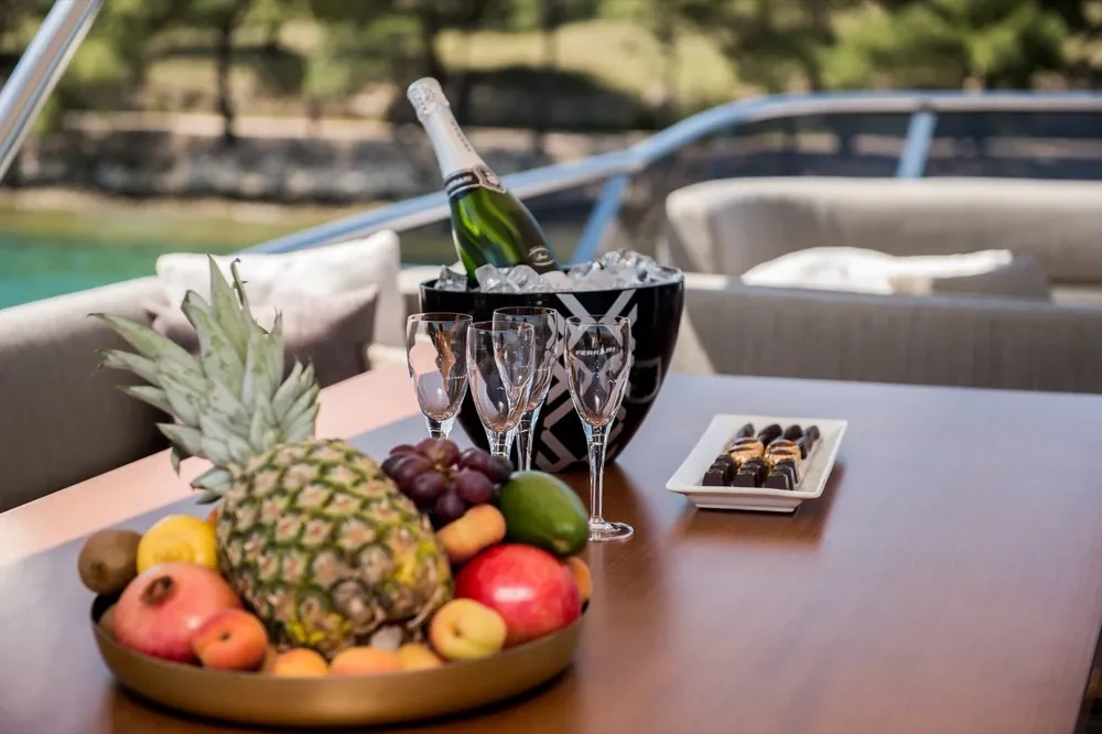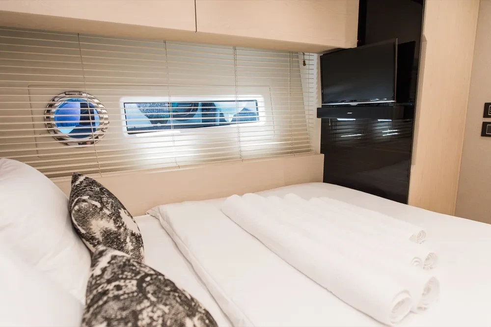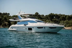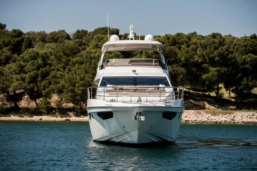 Alyss is a motor yacht that stands for comfort and performance. She has an overall length of 23 meters and four comfortable cabins with a capacity for eight people. She has bow thrusters, Wi-Fi, speakers, air conditioning and a swim platform to combine luxury and entertainment. The 2 x MAN V12 1400HP offer excellent speed and performance on the water. The Azimut 72 Fly is simply perfect if you want to spend your holiday on a charter yacht in Croatia. A professional crew consisting of captain and hostess will take care of the guests in every way.