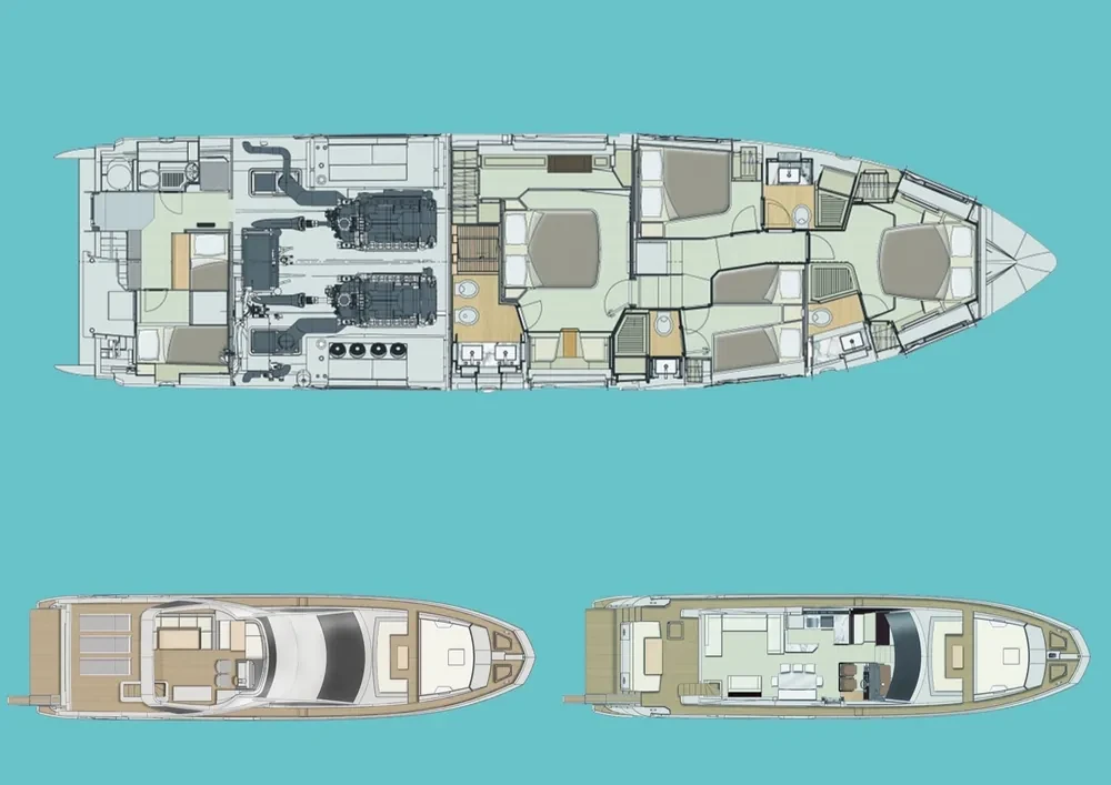 - Bose sound systems in the cabins, salon, cockpit and on the flybridge