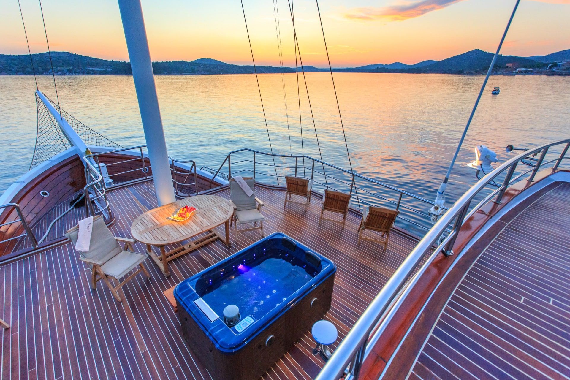Cockpit table, Cushions, Deck shower, Jacuzzi