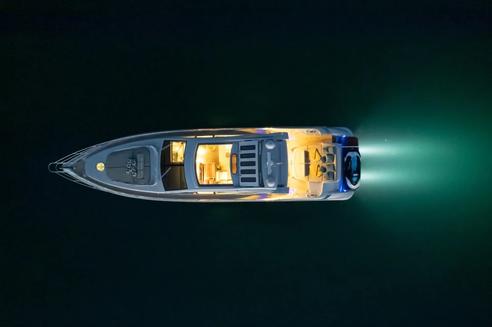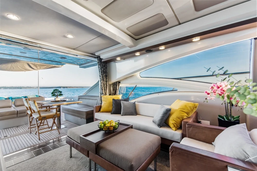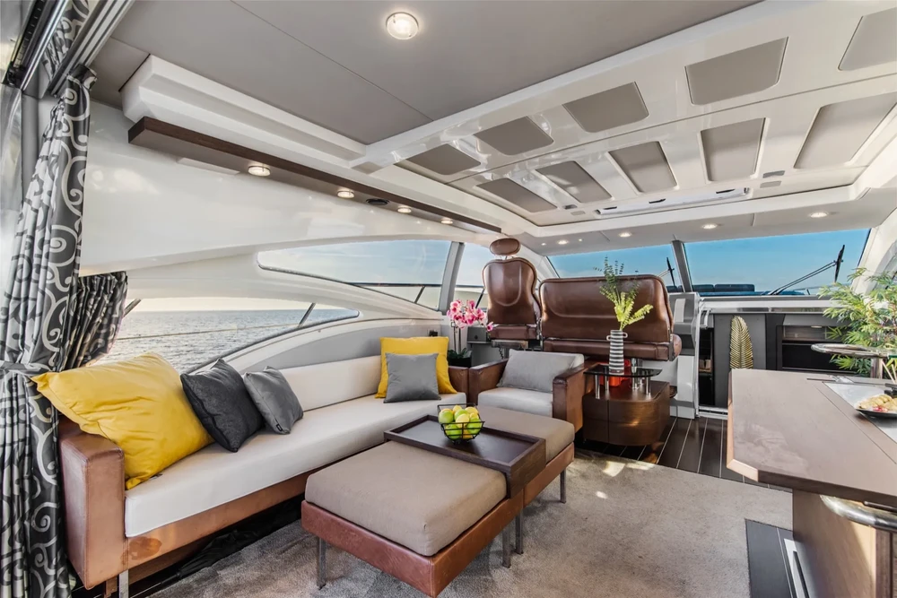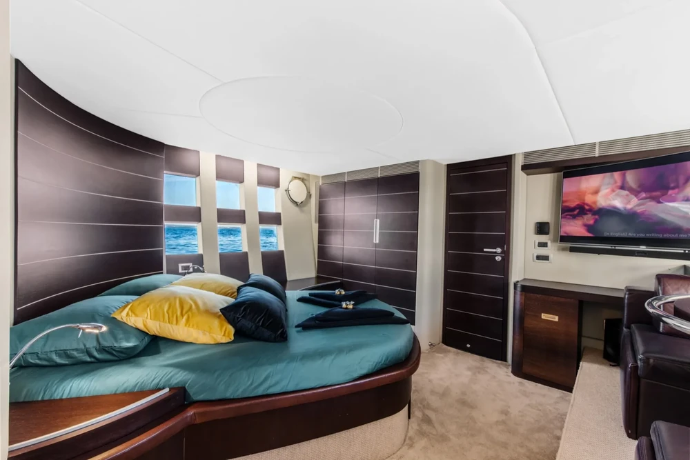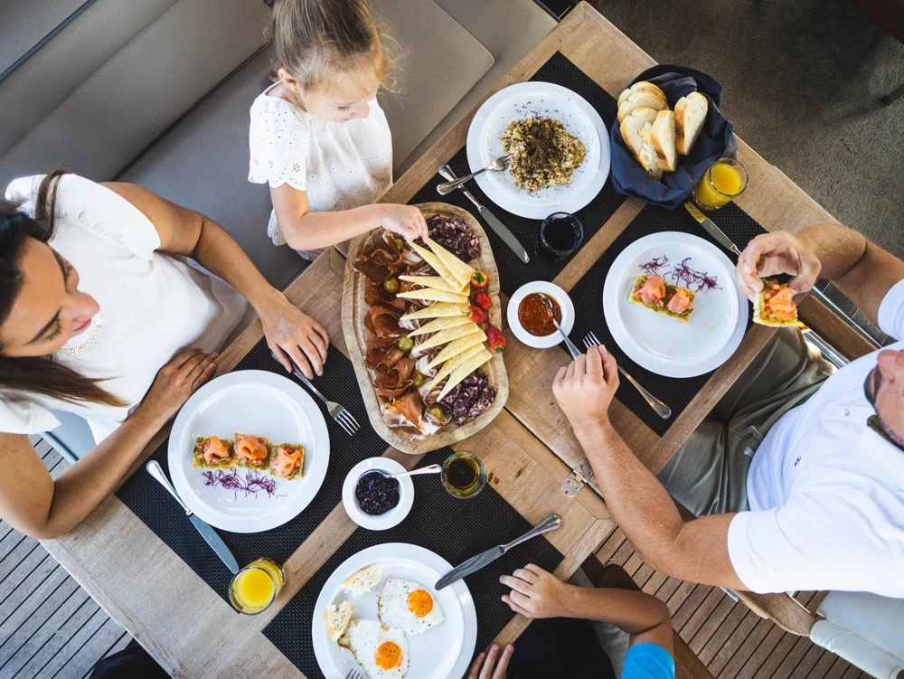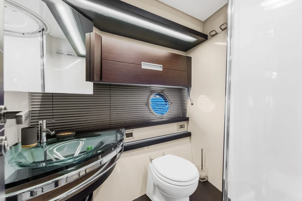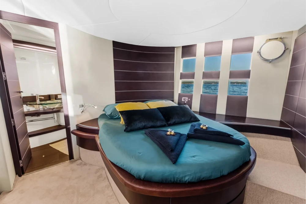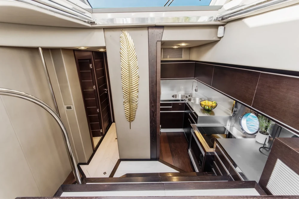 Outside speakers, Deck with dining area, Indoor dining, Minibar outside, Separate cabins for cews, Sun Mattresses, Ice maker, Summer tent, Coffee machine, Electric fridge, Towels