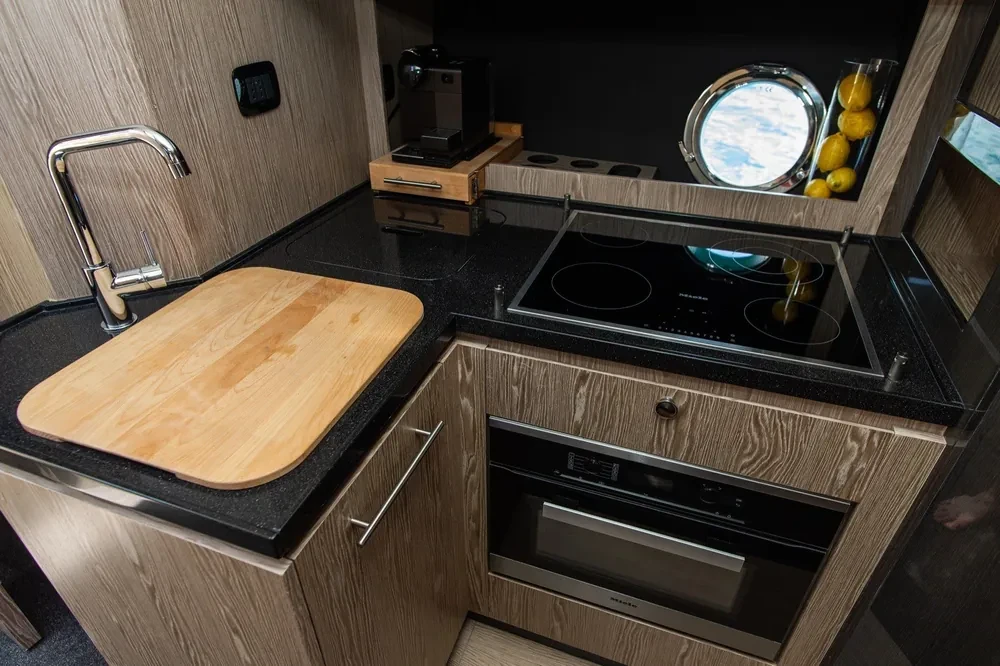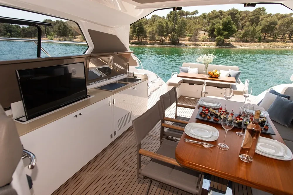 SAT antenna, LCD TV in Salon, owner cabin and cockpit, Fusion Sound System in Cockpit, free WiFi internet.