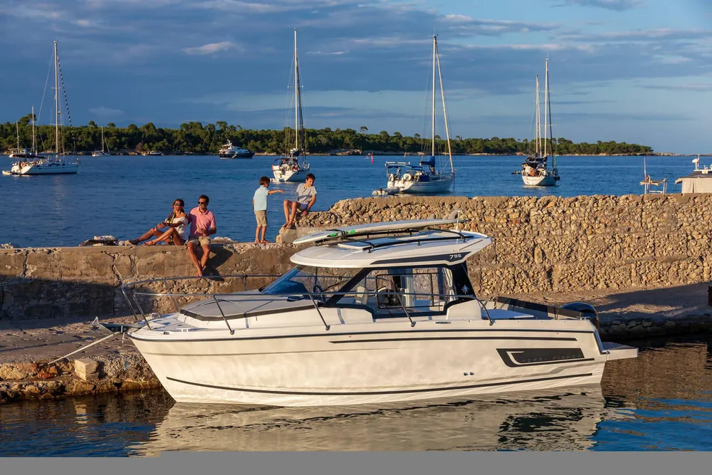 Comfortable, versatile, and cleverly designed, the Merry Fisher 795 Series 2 is the boat for weekends on the water with family and friends. Boasting a large forward double berth, it also accommodates two additional guests in the saloon, which transforms into a berth. Equipped with a shower and head compartment, as well as a galley, this model enables you to enjoy breakfast on board and a 360° view of the sea, all while sheltered within the well-ventilated saloon.