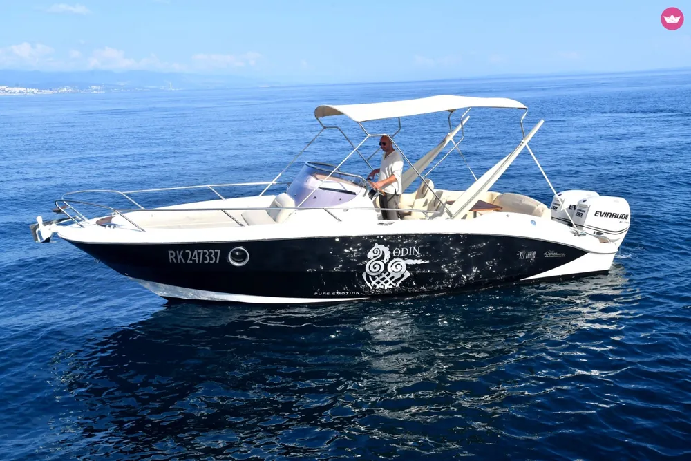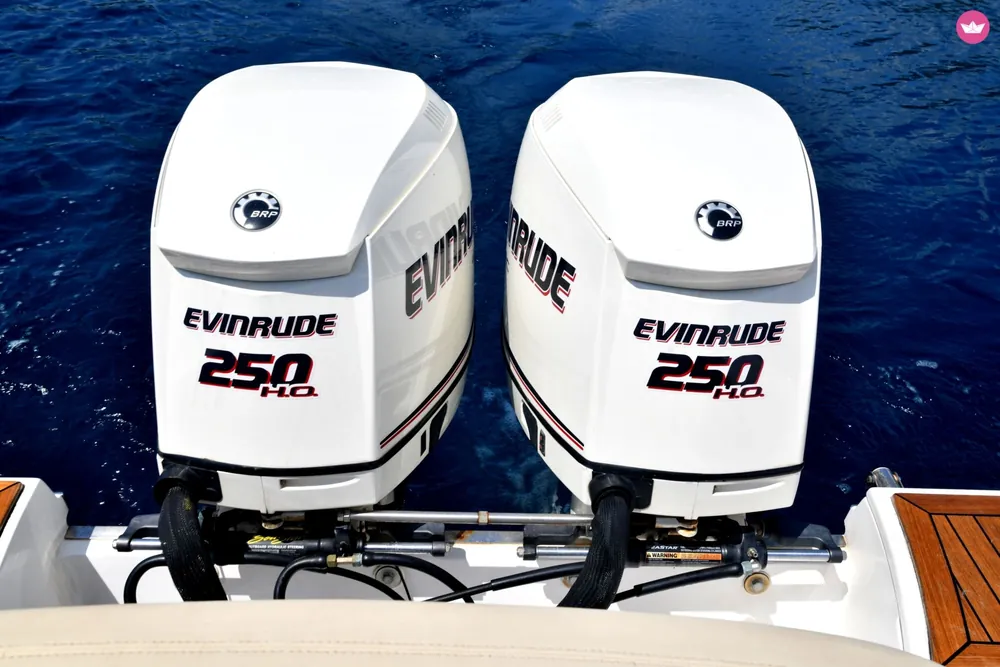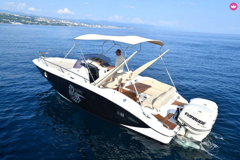 The very image of youth, while at the same time elegant and refined, for the NEW KL 27, this open 8m model that bends all the rules of the game. Fruit of the experience of more than 2000 units sold, it offers performances among the best of its size . Its square nose and curvaceous fins evoke the elegance of a shark. Comfort and relaxation characterize the cockpit thanks to a large L-shaped sofa transformable into a sun bath on the stern and to the counter space with kitchen sink, hotplates and refrigerator, all found under the pilot seats. Below deck there is a single imperative: maximum functionality. A separate bathroom with WC and sink make this boat unique in its category. The new design provides a deck with sharp and modern lines, a new livery designed by a long glass window that ennobles the product to be considered the new luxury open day: an innovative windscreen, more light inside the cabins to let the owner feels more in contact with the sea, metallic colors and personalized cushions.